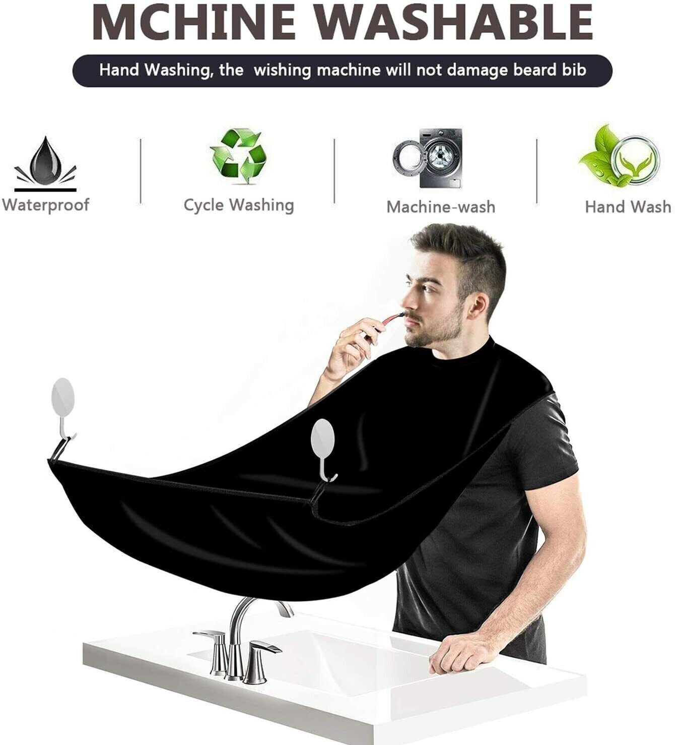 PRATICO - risparmia tempo! Con il grembiule puoi tagliare barba e baffi velocemente e senza sforzo, i capelli cadono nel grembiule invece che nel lavandino, così non dovrai asciugare i capelli sparpagliati - togliere il grembiule e buttare via i capelli - in pochi secondi.