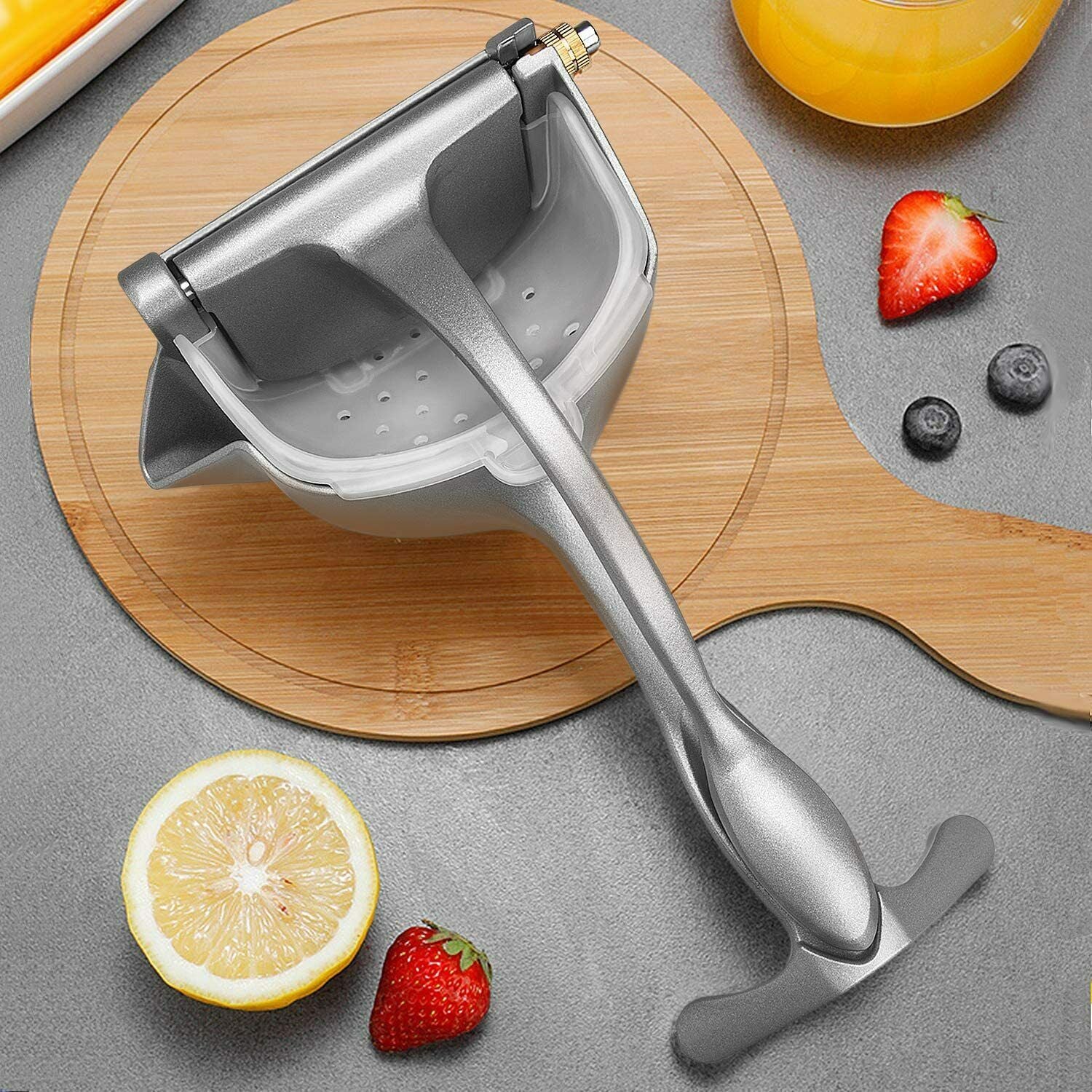 De handpers van een hoogwaardige aluminiumlegering zal u verbazen door zijn gebruiksgemak. Perst snel en effectief citroenen, sinaasappels, grapefruits, granaatappels en ander fruit uit.