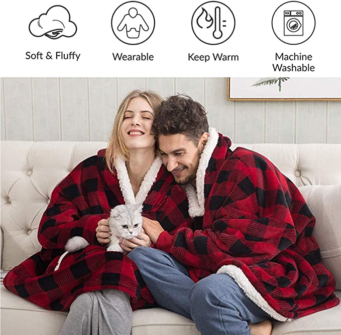 Coperta in pile Sherpa indossabile unisex, taglia da adulto, modello felpa gigante soffice e confortevole con cappuccio