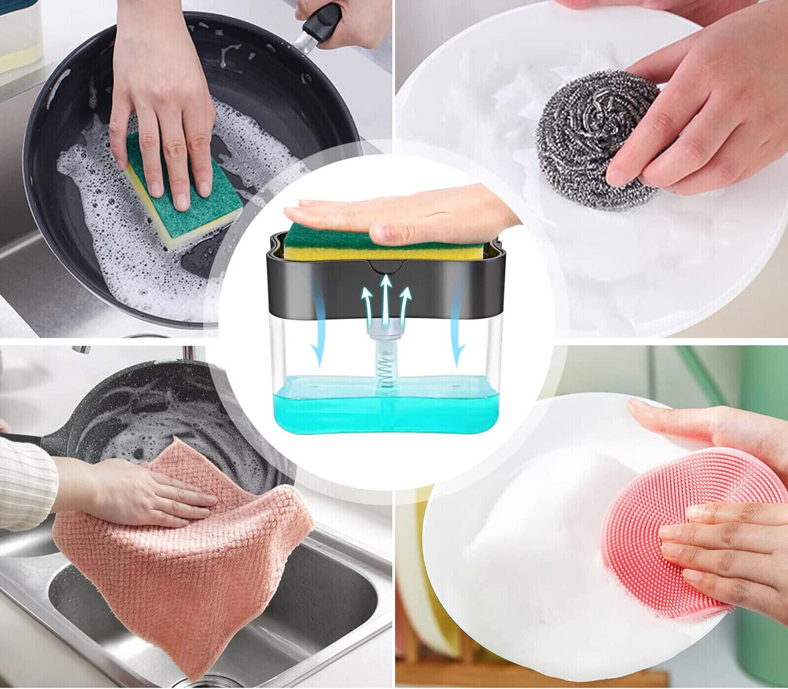 Dispenser Sapone Liquido Manuale Erogatore Spugna Piatti Distributore Detersivo