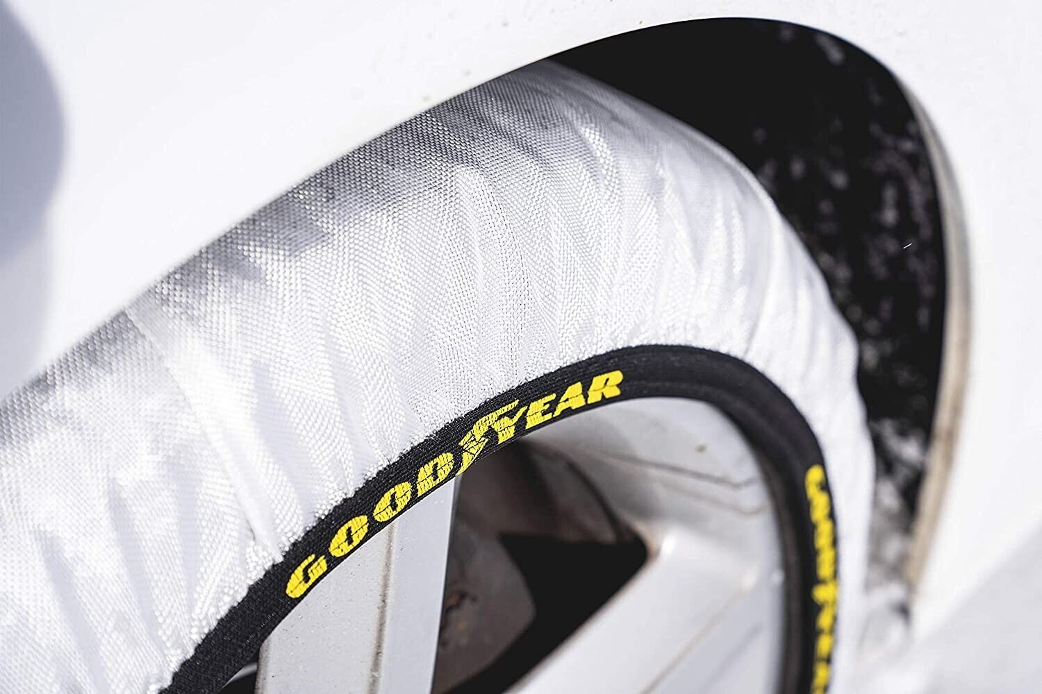 1 set di 2 catene da neve tessili Goodyear UltraGrip taglia XL. Silenzioso, senza vibrazioni, veloce e facile da montare, nessun danno agli pneumatici. Utilizzare solo su strade innevate. Con guanti inclusi. Velocità massima 40 km/h.
