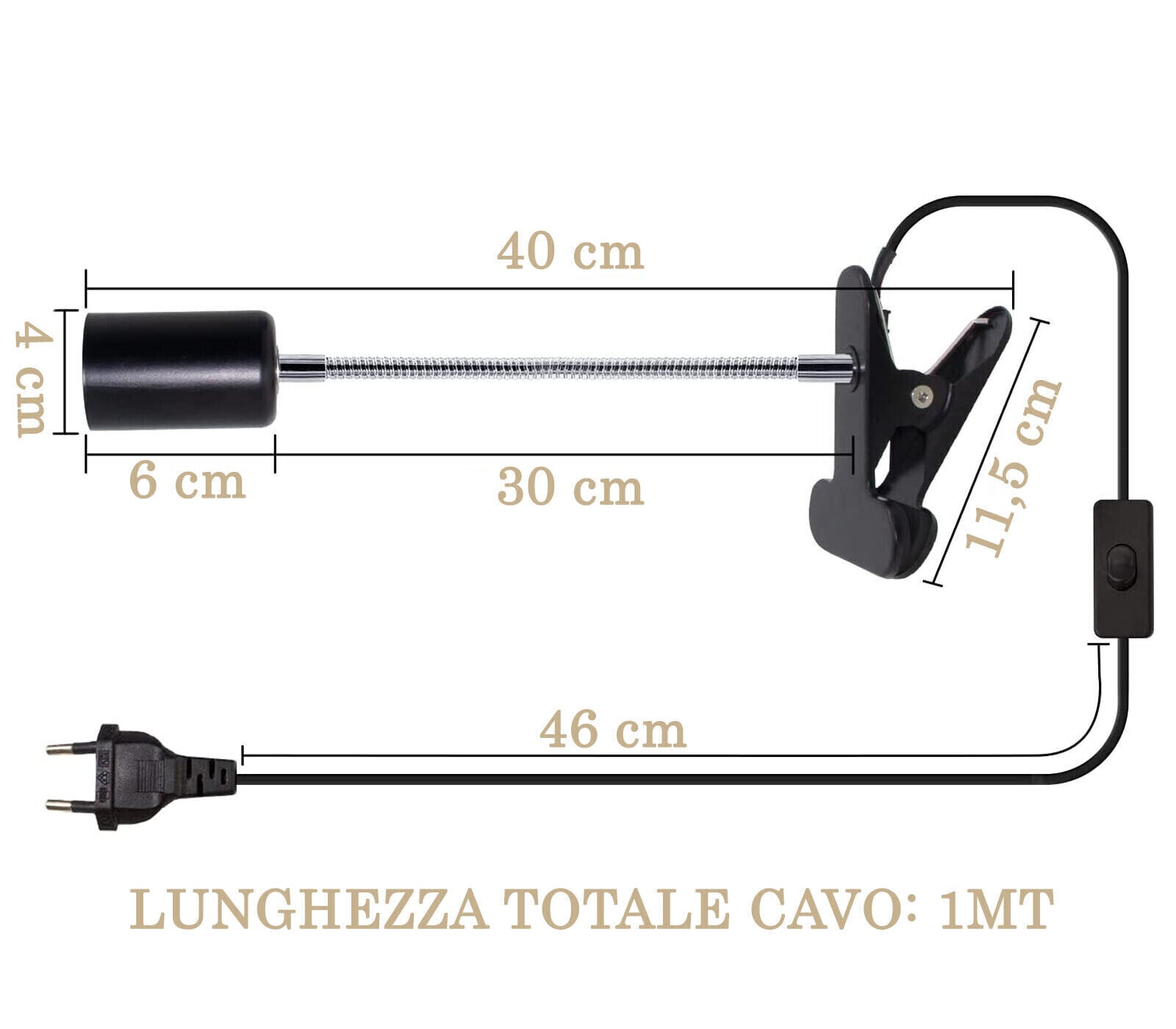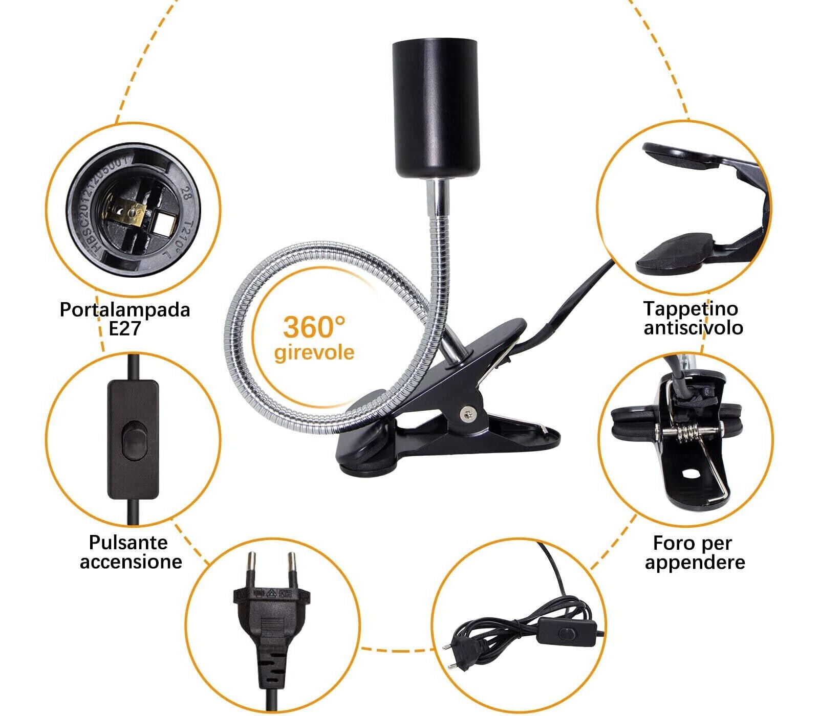 Portalampada E27 Con Pinza Morsetto Con Interruttore Lampada Acquario Scrivania