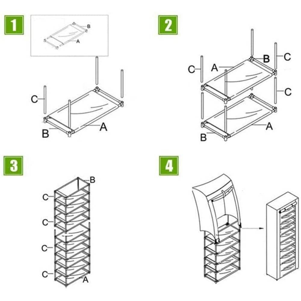 - Per riporre stivali, stivali, scarpe pesanti e stivali da neve, puoi appoggiarli sugli scaffali o semplicemente rimuovere 1 ripiano. Non influisce sulla sua stabilità.Si prega di evitare di unire i tubi con la forza al connettore, ma girare lentamente il tubo di ferro nel connettore all'interno.