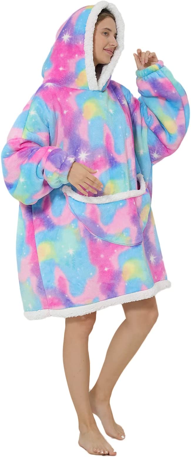 EASY CARE: coperta gigante lavabile in lavatrice in acqua fredda con colori simili, non necessità di essere stirata. Questa Felpa/Coperta con cappuccio di grandi dimensioni rimane la stessa dopo ogni lavaggio.